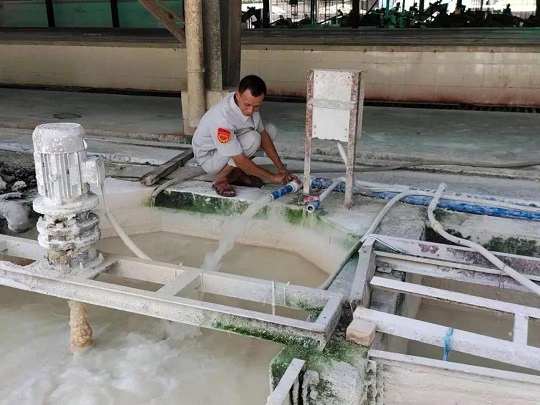 金山加工分公司破解了TSR-10灰分超标难题,管理人员在调节石灰水。潘升煜 摄