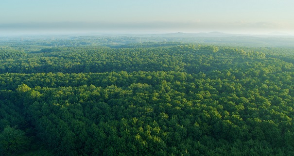 朝阳下的橡胶林生机盎然。