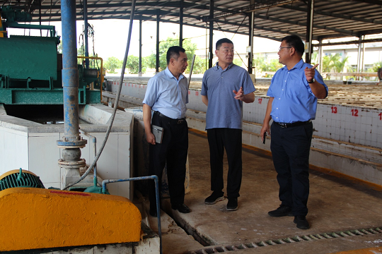 姜宏涛(中)在胶清车间调研。