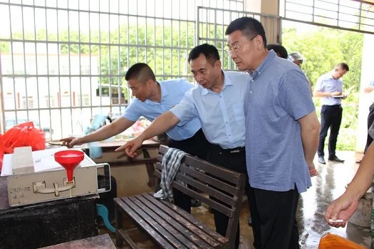 姜宏涛(右一)在收胶站实地调研。