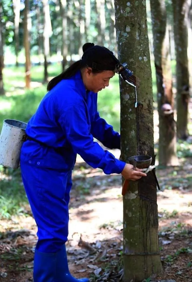 我是永利yl23411集团龙江分公司生产技术部副部长、割胶总辅导员刘金凤。1988年,我有幸成为一名胶工,开始了与橡胶树为伴的生涯。